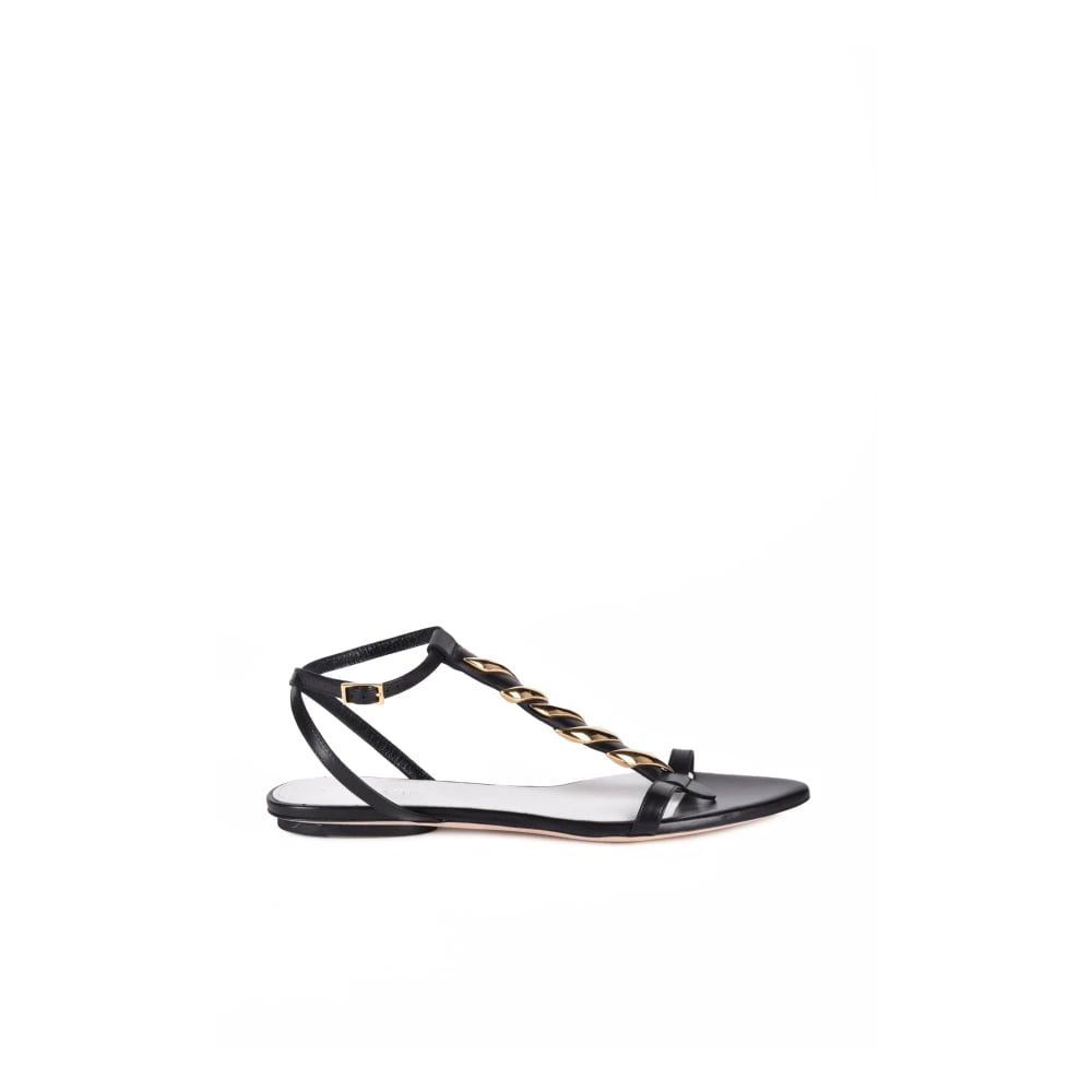 Lanvin, Skor , Dam, 39 EU, Läder, Lädersandal med rhinestone framdetalj