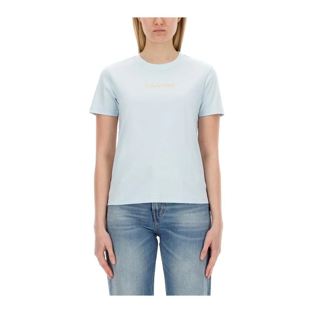 Lanvin, Toppar , Dam, XS, Bomull, Broderad Logotyp Viskos Bomull T-shirt