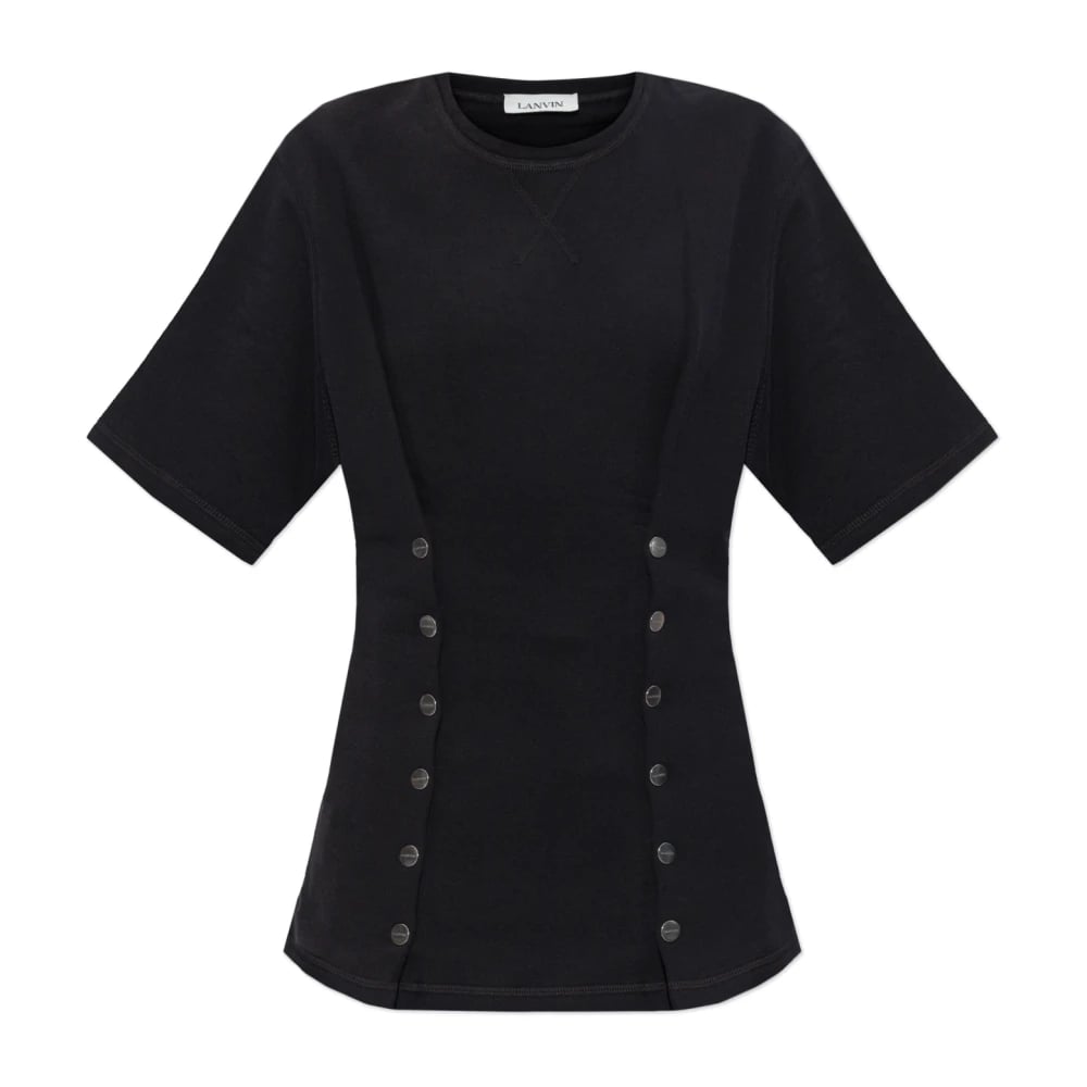 Lanvin, Toppar , Dam, M, Bomull, T-shirt med logotyplappar