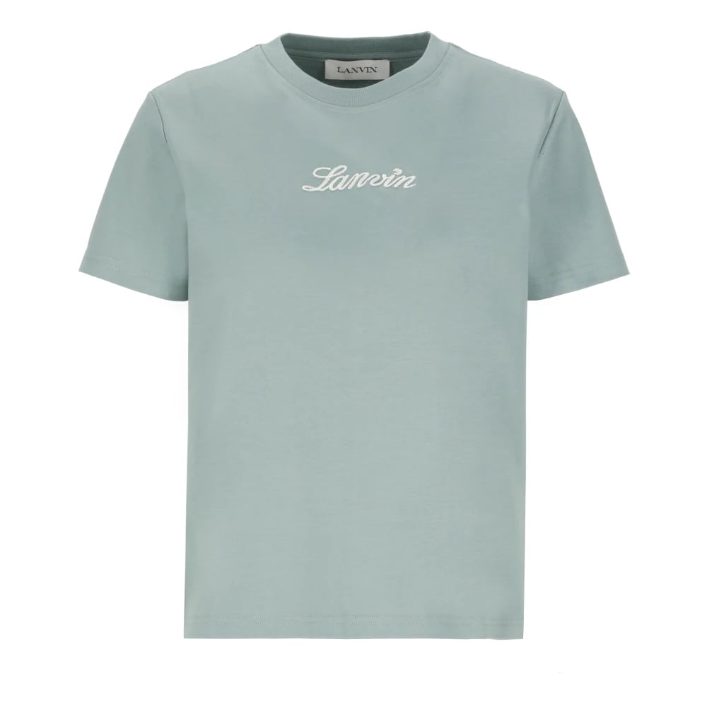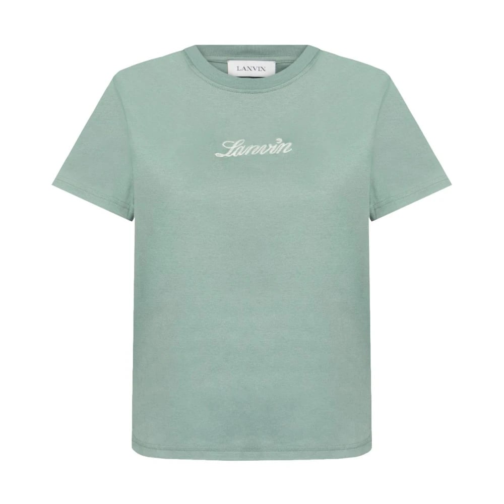 Lanvin, Toppar , Dam, S, Bomull, Grön bomulls-T-shirt med broderad logotyp