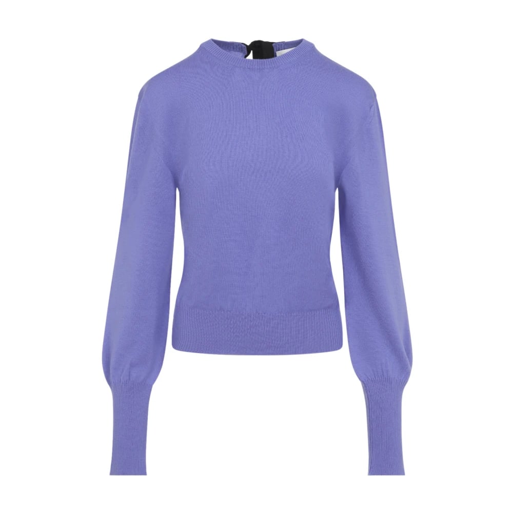 Lanvin, Stickade Tröjor , Dam, S, Ull T-shirt Tröja med Grosgrain-detalj