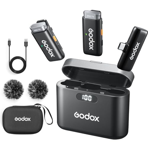 Godox WES2 KIT2 trådlös lavalier mikrofon för Type-C, MFi-certifierad, Plug and Play brusreducerande Lapel mic med 656 fot överföring, laddningsfodral, kompatibel med Type-C, iPhone 15 (WES2 KIT2)