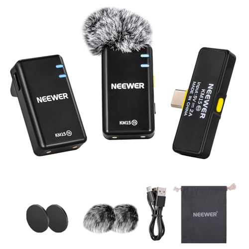 NEEWER Trådlös mikrofonuppsättning, USB C-telefon Lav Mic för iPhone 16 15 Pro Max iPad Android, brusreducerande lapel Lavalier mikrofonsystem, videoinspelning Live Stream Podcast, KM15