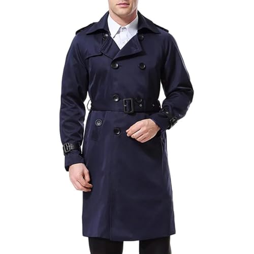 AOWOFS Vinterrock för män, lång trenchcoat, med dubbelknäppt bälte, överdel, lappad krage, ytterkläder, parkas, Färg: blå, L