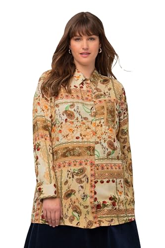 Ulla popkar, kvinnor, stora storlekar, skjortblus, tryck, lappad, Guldmatt