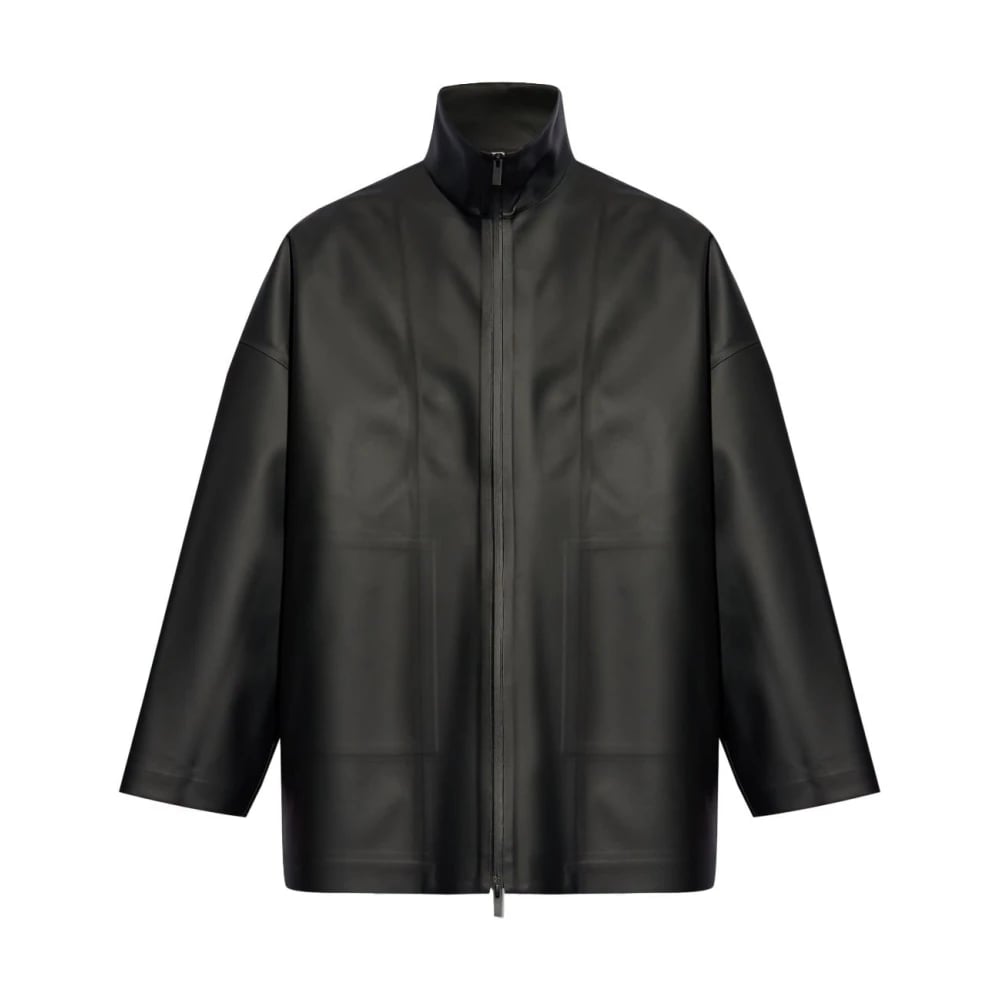 Fear Of God, Kappor & Rockar , Herr, M, Läder, Svart läder lappad hög hals kappa