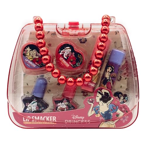 Lip Smacker Snövit The Prettiest Beauty Book, 25-Delat Sminkkit för Barn med Läppglans, Läppbalsam, Skimmer Krämer och Accessoarer, i Ett Sött Bokformat Fodral, Disney Prinsess-Present