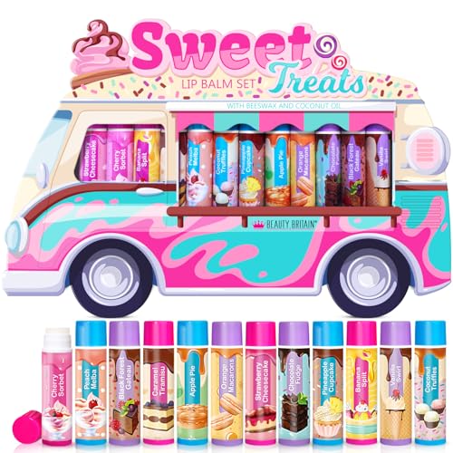Kids Läppbalsam Set Sweet Treats - 12 Olika Dessertsmaker, Bivax & Kokosolja, Färglösa, För Flickor och Pojkar