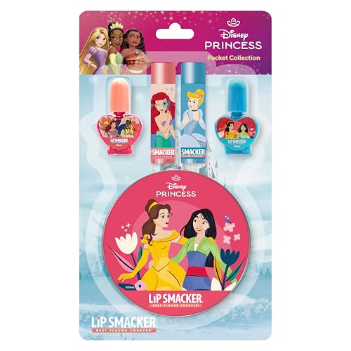 Lip Smacker Princess Beauty Pocket Collection, 4-Stycken Disney Princess Sminkset för Barn Inkluderar Läppbalsam och Nagellack, I En Söt Disney Princess Sminkburk, Disney Prinsess present