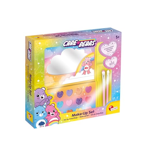 Lisciani - Care Bears - Skönhetsset för barn från 5 år - Sminkkit med spegel - Palett med 15 färger ögonskugga, rouge och läppglans - 2 kosmetikborstar - Care Bears