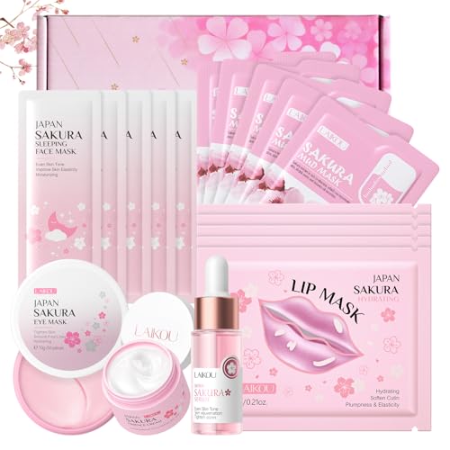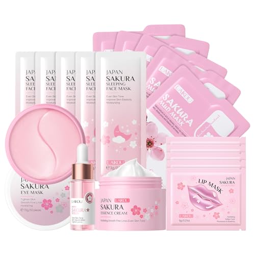 Hudvård För Tonårsflickor, Sakura Hudvårdsset, Lyxiga Presentset För Kvinnor, Ansiktsvård Set & Kit – Ansiktsserum, Ansiktskräm, Sovmask, Ögonmask, Lerinpackning, Sheetmask, Läppmask, 13 Delar