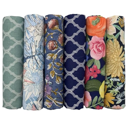 UOOOM Set med 6 st 50 x 50 cm lappverk bomull gör-det-själv handgjort sytyg quiltning olika mönster (färg 9012#)