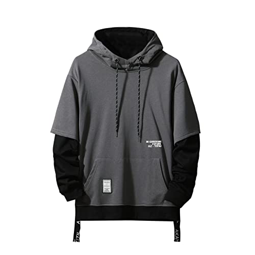 Hello MrLin Herr Techwear hip hop huvtröja japansk streetwear lappverk urban jumper, Svart, 3XL