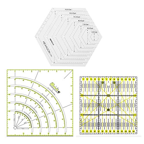 3-pack sömnadslinjal set, bågar och fläkt täcke cirkelskärare regel och sexkantiga former linjal, gör-det-själv hand lappverk linjal klar akrylmall för mätning skärning quiltning och sömnad hantverk