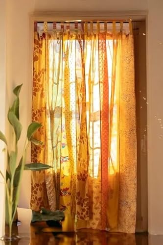 RAJBHOOMI HANDICRAFTS Dekorativa sidensarigardiner - unika lappverk - ljusfiltrerande fönstergardiner för vardagsrum och sovrum - 213 cm långa flera färger)