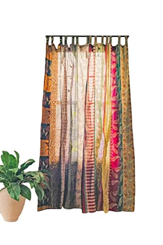Rajbhoomi HANDICRAFTS 2 st indisk vintage ljusfiltrerande sari färgglada gardiner - flerfärgade handgjorda lappverk rum gardiner gardiner heminredning gardin (blandad) 213 cm x 107 cm tum