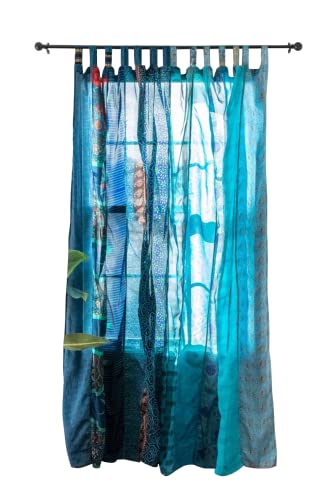 RAJBHOOMI HANDICRAFTS Dekorativa sidensarigardiner – unika lappverk – ljusfiltrerande fönstergardiner för vardagsrum och sovrum – 213 cm långa, (turkos)