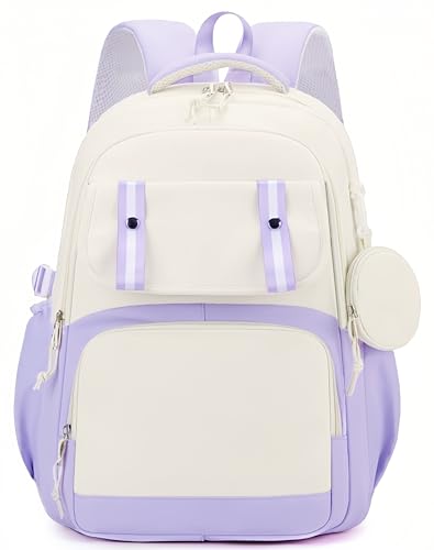 Aryan svart ryggsäck för kvinnor, 17 tum lätt söt skolväska för tonårsflickor, laptop-ryggsäck för skola college pendling resor (svart), Lila, M, Avslappnad