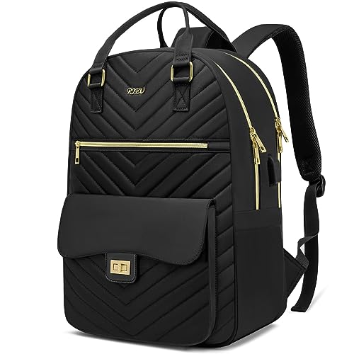 Lekespring stor ryggsäck handbagage för kvinnor, 17 tums laptop ryggsäck reseryggsäck affärsryggsäck med 6 delar klädväskor för semester affärer resor, svart quiltad, svart, XL, Casual business