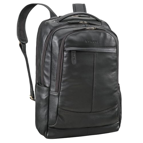 STILORD "Harlow" läderryggsäck för män XL affärsryggsäck laptop ryggsäck 15 till 17 tum stor arbetsryggsäck med många fack och vagn fästsystem vintage äkta läder, Maraska – brun, L, Ryggsäck