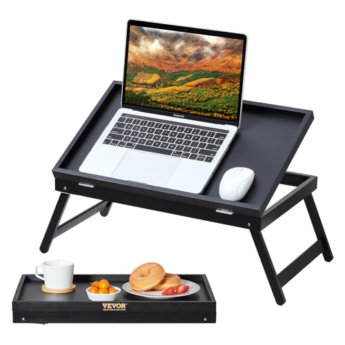 VEVOR Sängbricka bord med vikbara ben, bambu frukostbricka för soffa, säng, äta, mellanmål och arbete, justerbar bordslutning servering laptop skrivbordsbricka, bärbar mat mellanmålstallrik, 50 cm x