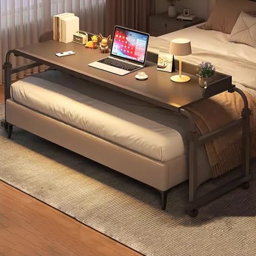 Översäng Skrivbord Laptopvagn Laptop Skrivbord med Hjul Bord med Hjul Höjdjusterbart Datorbord med Baffel Stående Arbetsstation för Dubbelsäng/Hel/Queen/King Size-säng(Color:Svart)