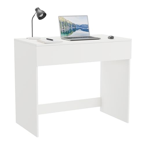 ComfortCove Vitt Skrivbord med Låda, Litet Hemmakontorsskrivbord för Laptop, Funktionell Arbetsyta för Hem eller Kontor, Enkel Platsbesparande Bord för Studier, Arbete eller Gaming, 90 cm