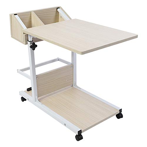 lyrlody Höjdjusterbart laptop-skrivbord med hjul, vikbar bäddsoffa skrivbord med förvaringslåda, stabilt bord för hem och kontor (vit)