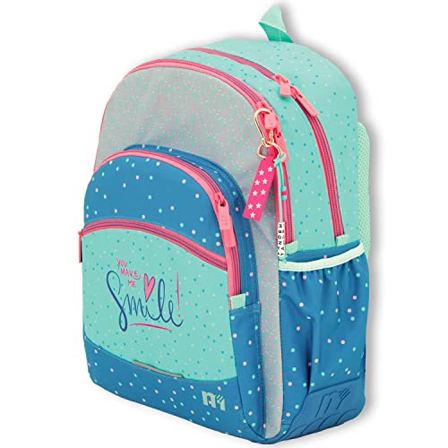 OFITURIA Skolryggsäck Flicka, Bil Adaptiv ryggsäck, Stor Kapacitet och Dubbel Dragkedja, Ryggsäck med Laptop Cover med Ficka Framficka och Sidficka, Smile, L, Avslappnad