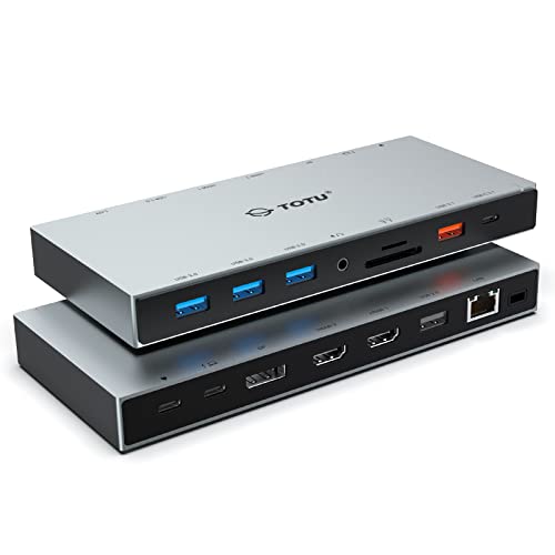 TOTU 15-i-1 USB C dockningsstation 3 skärmar med dubbla HDMI 4K, DisplayPort, 10 Gbps USB 3.1, 100W PD, 3 USB 3.0, Ethernet, Audio/Mic för MacBook och Windows Laptop med Thunderbolt 3