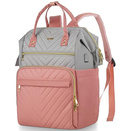 Ryggsäck för Kvinnor,Laptop Väska Ryggsäck 15.6 tum PC Dator,Vattentät Ryggsäck med Många Fack för Företag,KontorArbete,Sport,Rosa grå