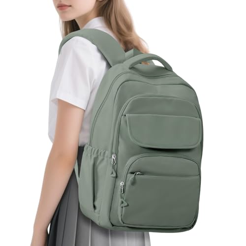 HYC00 Skolryggsäck Flicka Tonåring Ryggsäck Lätt Skolväska Flicka Pojkar Skolväskor Fritidsryggsäck för Kvinnor Bokväskor Högskola Vattentålig Laptop Ryggsäck Dam 15.6 Tum College Bag,Armégrön