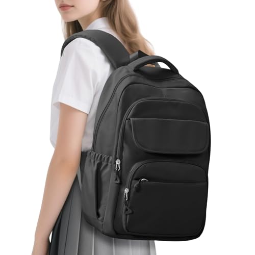 HYC00 Skolryggsäck Tonåringar Ryggsäck för Kvinnor Skolväska College Ryggsäck Skola Pojkar Avslappnad Dagväska Lätt Bokväska Vattentät Laptop Väska Ryggsäck 15.6 Tum Fritidsryggsäck,Svart L