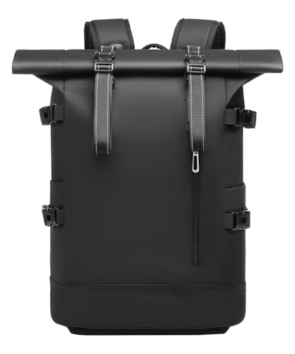Lubardy Rolltop ryggsäck män kvinnor vattentät ryggsäck män laptop ryggsäck 17 tum med USB-perforering skolryggsäck dagryggsäck för universitet arbete resor fritid, svart, 17,3 Zoll, Avslappnad
