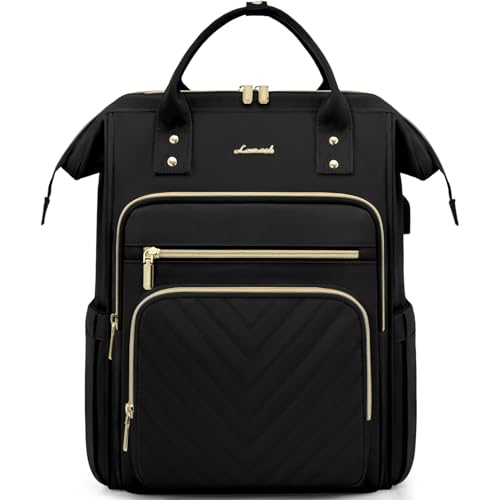 LOVEVOOK Ryggsäck dam, laptop skolryggsäck tonåring flickor vattentät, elegant reseryggsäck dagväskor arbetsväska, skolväska handbagage ryggsäck kvinnor för resor universitet kontor, A-svart, 17.3