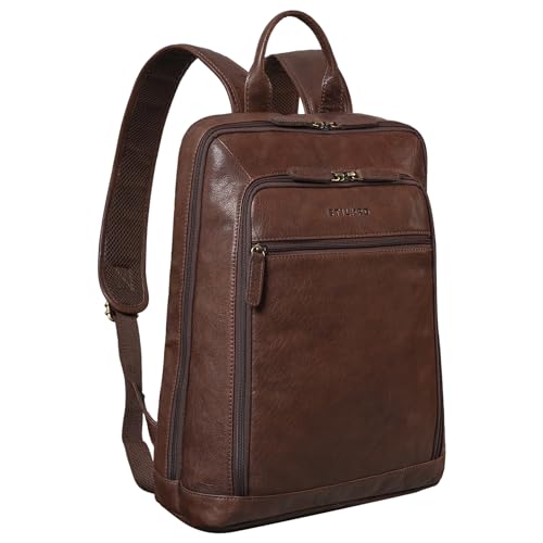 STILORD 'Watson' laptop-ryggsäck 15,6 tum läderryggsäck affärer läder ryggsäck herr ryggsäck XL för bred DIN A4-mapp dagväska vintage äkta läder, Zamora – Brun, Large