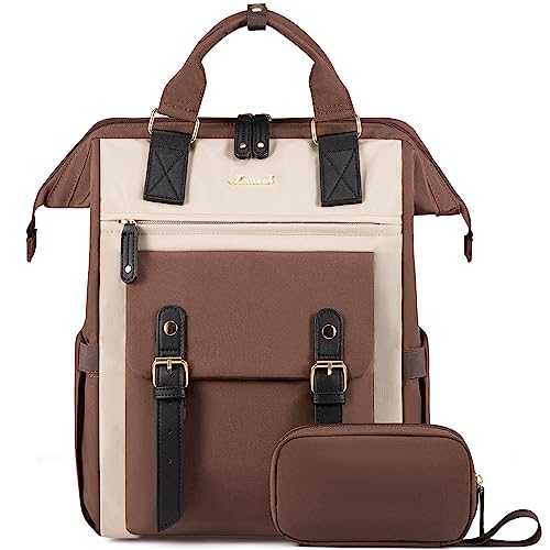 LOVEVOOK Laptop ryggsäck dam, vattentät arbetsryggsäck, skolryggsäck, tonåring, för stor drickflaska, elegant skolväska, ryggsäckar, ryggsäck för arbete, skola, universitet, resor, Aprikos + brun, 17"