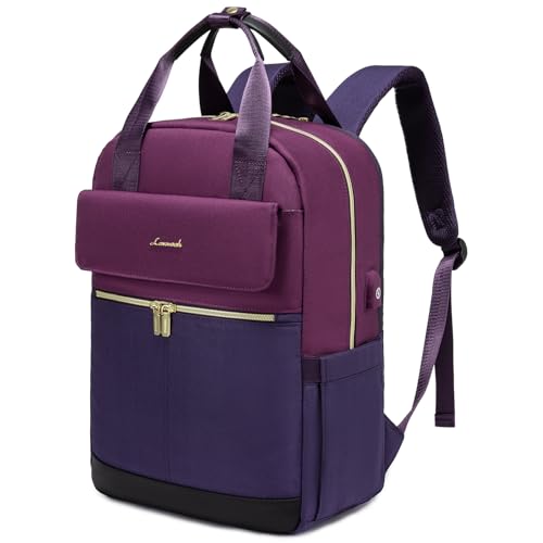 LOVEVOOK Laptop ryggsäck dam, vattentät arbetsryggsäck, skolryggsäck, tonåring, för stor drickflaska, elegant skolväska, ryggsäckar, ryggsäck för arbete, skola, universitet, resor, Mörk lila, 15.6"