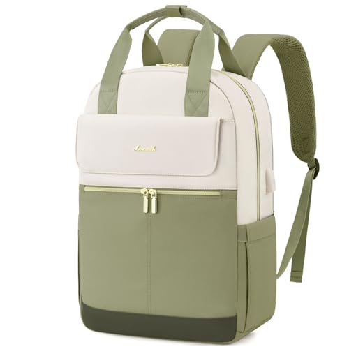 LOVEVOOK Laptop ryggsäck dam, vattentät arbetsryggsäck, skolryggsäck, tonåring, för stor drickflaska, elegant skolväska, ryggsäckar, ryggsäck för arbete, skola, universitet, resor, beige + khaki, 15,6