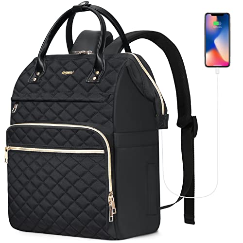 LOVEVOOK Laptop ryggsäck dam, vattentät 17 tums arbetsryggsäck skolryggsäck tonåring för stor drickflaska, eleganta ryggsäckar skolväska ryggsäck för arbete skola universitet resa, svart