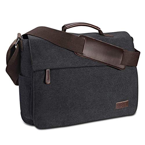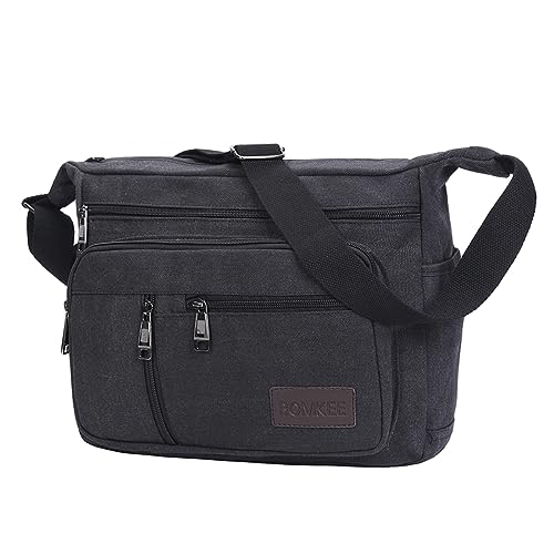 BOMKEE Axelväska herr, Messenger Bag stor kanvas axelväska axelväska 15,6 tum laptopväska för arbete skola resor, svart