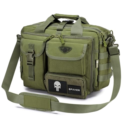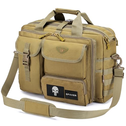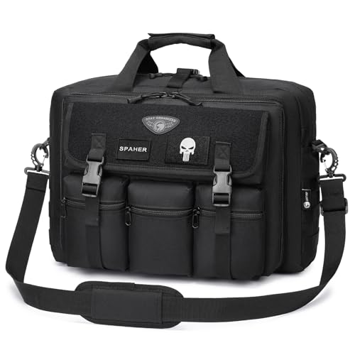 SPAHER Portfölj Herr Arbetsväska Laptopväska 15,6/17,3 Tum Business Tactical Bag Vattentät Militärväska Axelväska Arbete Dator Väska Herr Handväskor för Män Laptop Messenger Bag med Justerbar Rem
