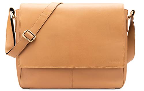 LEABAGS Läderaxelväska herr och dam I Messenger Bag med axelrem I äkta läder laptopväska upp till 15 tum I axelväska I arbetsväska I bärväska I handväska, Beige, Einheitsgröße, Bohemisk,