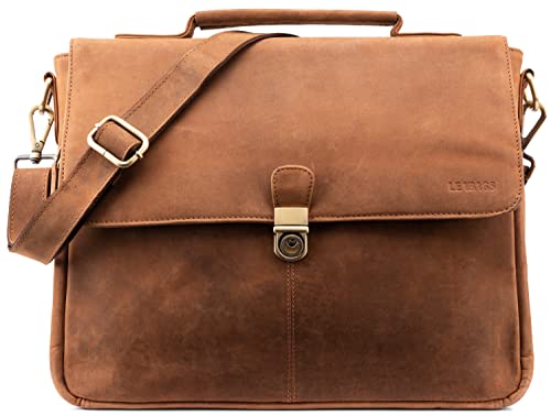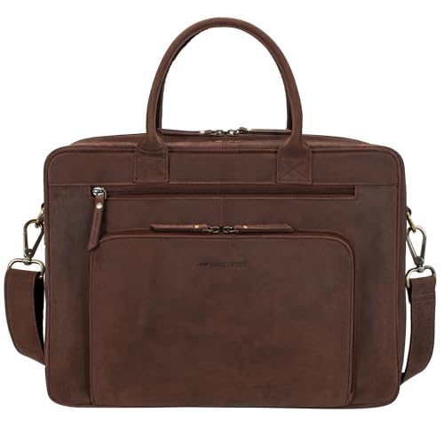 Marc Peter® Hamilton businesväska herr läder 15,6 tum | läder laptopväska | stor portfölj axelväska av vintage kohud, Hunter Braun
