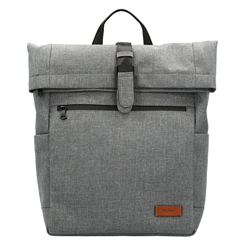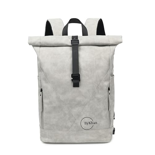 ByKhan Vattentät PU läder rulltop ryggsäck med stor laptopväska - för herr och dam, arbete, högskola, resor - PC-hållare, Grå, L