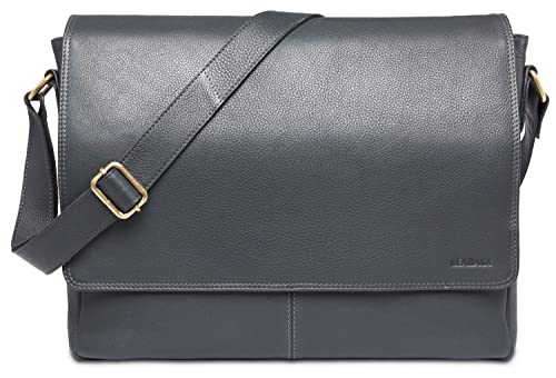 LEABAGS Läderaxelväska herr och dam I Messenger Bag med axelrem I äkta läder laptopväska upp till 15 tum I axelväska I arbetsväska I bärväska I handväska, Nappa grå, Einheitsgröße, Bohemisk,