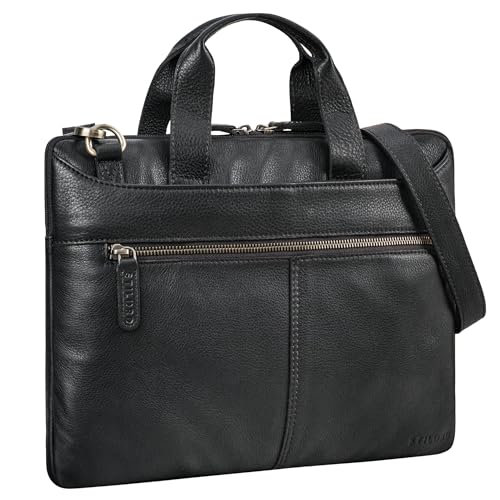 STILORD "Ross" vintage laptopväska i läder 14 tum smal portfölj herr laptop väska dam arbete och resor dokumenthållare, svart, M, portföljer