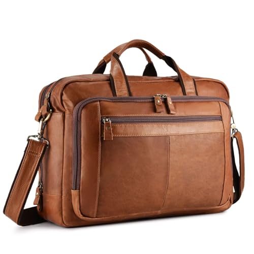 UBAYMAX Läderportfölj laptopväska herr, vintage läderväska affärsväska för upp till 17 tum bärbar dator, klassiskt äkta läder axelväska arbetsväska messengerväska, 17 Zoll (Brun 1)