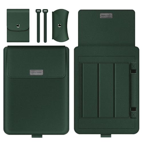 GANGANPRO Laptopfodral 16-17 tum fodral med stativ kompatibelt med Microsoft Surface laptop 5/4/3/2 13,5 tum, MacBook Air/Pro 13,3 tum, PU-läderfodral för 15-16 tum bärbara datorer – mörkgrön