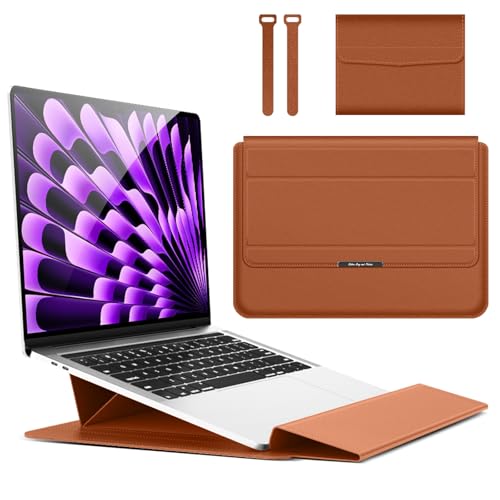 Hinnwer 15 15,6 tum laptopfodral för MacBook Air 15 M3/M2 A3114 A2941, MacBook Pro 16 M4/M3/M2/M1 Pro/Max (2024-2019), MacBook Pro 15 M3/M2 A3114 A2941 justerbart stativfodral Påse brun